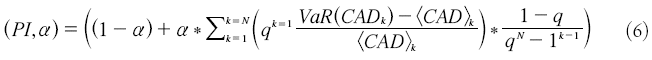 Entonces, en el modelo interviene la volatilidad relativa al valor esperado del CAD de cada año, lo que es directamente una medida del "error de pronóstico" del CAD de cada año. El valor de a puede variar entre a = 0 (minimización del valor esperado del CAD actualizado) y α = 1, que implica dar máxima relevancia a la suma actualizada de la volatilidad relativa, dividida por la suma de los factores de actualización.