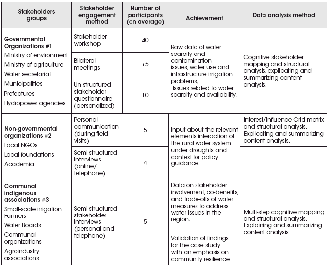 To understand how community resilience to drought is perceived via engagement by stakeholders in the Ambi River basin, we systematically explained our findings by using the information from a series of digital maps provided by the water resources management department of the Imbabura prefecture. The actors were based on the fanctional differences between governmental and non-governmental groups.