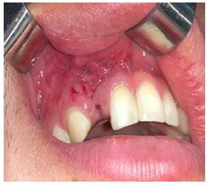 Se le realizó el control postoperatorio a los 7 días, donde se observó cicatrización satisfactoria, se retiraron los puntos de sutura y se realizó una rehabilitación provisional; posteriormente está planificada la rehabilitación con implantes (Figura 7a y 7b).