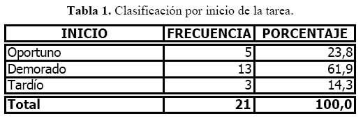 - Inicio Tardío (si iniciaba su interacción después del día 11). Los resultados encontrados se presentan en la tabla siguiente: