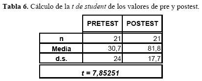 Se entiende a "n" la población total (21 alumnos ) y "Media" las medias de cada una de las muestras, "d.s." es la desviación estándar calculada para cada una de las medidas.
