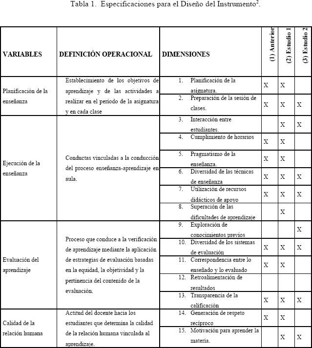 El instrumento de evaluación. Siguiendo a Gento ( 2003) y Gonzáles (1999), la evaluación docente fue realizada con un instrumento cuyo diseño respondió al proceso de elaboración de instrumentos psicológicos para medir las actitudes de los estudiantes universitarios respecto a la calidad de la educación recibida de sus profesores. En este sentido, para el diseño del instrumento se consideró lo siguiente: