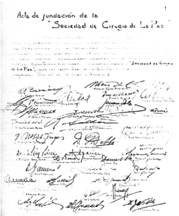 Tras su fundación, la “Sociedad de Cirugía de La Paz” contó con el respaldo legal y el apoyo de los médicos especialistas en cirugía y áreas afines, quienes colaboraron activamente para consolidar y hacer crecer la institución. Este esfuerzo permitió que la sociedad se convirtiera en la precursora de la creación de otras instituciones médicas a nivel nacional. Los cirujanos, en su rol como docentes en las facultades de medicina, lograron gradualmente establecer la institucionalización de la medicina y sus especialidades, con la cirugía como la pionera de todas ellas.