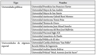 Cuadro 1 Instituciones de educación superior que conforman el Sistema de la Universidad Boliviana