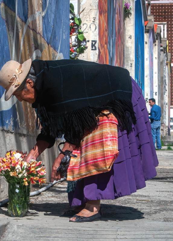 Al noroeste de la ciudad, sobre la avenida Baptista, vendedoras de flores se apiñan contra la fachada del Cementerio General. Sus puestos -improvisados altares de rosas, claveles y gladiolos- proveen un abanico de colores, en contraste con el muro blanco y las rejas verdes del camposanto. La multitud, sin embargo, se desvanece a la distancia: cerca del ingreso principal, mujeres ofrecen sus ramos a los dolientes a cambio de unas monedas; unos metros más allá, solo quedan cestas solitarias. Los autos transitan más escasos que en días hábiles. En la acera del frente, un hombre de gorra roja, sentado sobre un taburete descolorido, indiferente, espera un café caliente, una marraqueta crujiente y un trozo de queso.
