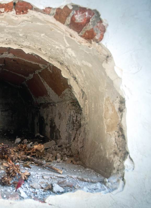 Una imponente estructura de piedra domina la entrada, un arco del triunfo de catorce metros hacia el cielo -alto y severo- que se erige como frontera entre el bullicio de los vivos y el silencio de los muertos. Construido en 1835 bajo el estilo neoclásico, su diseño evoca una puerta de ingreso a “La Gloria del Reino de Dios”. Sus relieves, gastados por el tiempo, han presenciado más de un siglo de lágrimas y reciben cada día a una gran cantidad de personas, vivas y muertas. Los vivos, vestidos de negro como sombras de paso, y los muertos, inmóviles y pálidos, envueltos en lino blanco al interior de sus mortajas. Un atrio separa el arco de la capilla, conformándose un espacio intermedio antes de entrar, un purgatorio de cerámicas. Allí se mezclan los pasos apresurados de quienes ingresan con fl ores frescas y de quienes salen con las manos vacías, los que murmuran oraciones y los que solo cargan con el peso del recuerdo.