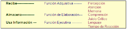 b) Funciones Cognitivas: Son los procesos por los cuales se recibe, almacena y usa la información