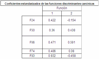 a Se han ampliado las dos primeras funcionesdiscriminantes canónicas en el análisis