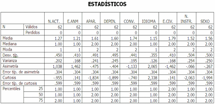 Se realizo en primer lugar la matriz de vaciado de información de los 62 pacientes del estudio, en base a la cual se procesa el análisis factorial presentando su varianza total y su matriz rotada para la interpretación de factores o componentes principales. A continuación se muestra, por límites de extensión, el cuadro de identificación de factores:
