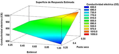 Figura 7 Superficie de respuesta estimada de la conductividad eléctrica de los sustratos de experimentación