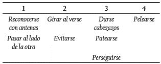 Tabla 1 Clasificación de las interacciones que se registraron según una escala de agresividad donde 1 son las interacciones menos agresivas y 4 las más agresivas.
