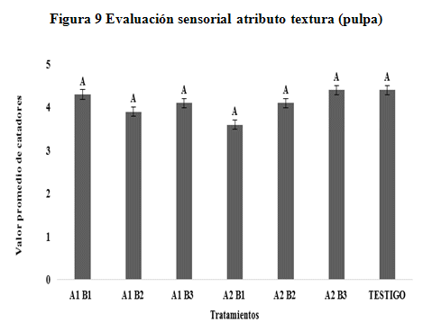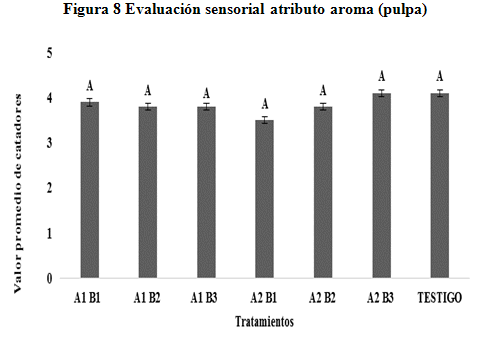 Contrariamente no se encontraron diferencia significativa las variables tales como: Color, aroma, textura de la pulpa. (Figura 7, 8 y 9)