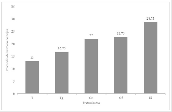 Figura 1 Efectividad de cuatro especies de hongos micorrícicos arbusculares sobre el número de hojas en S. tuberosum L. “papa”