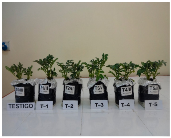 Transcurridos 110 días, en cada UE se evaluó: longitud de la planta (LP), número de hojas (NH), peso fresco aéreo (PFA), peso seco aéreo (PSA) de la planta, peso fresco de raíz (PFR), peso seco de la raíz (PSR), longitud de raíz (LR). La determinación del número de esporas/g de substrato y el porcentaje de colonización, calculándose con la siguiente fórmula16.