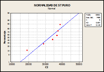 Se prepararon 5 niveles de concentración, cada nivel con tres réplicas, para linealidad del método (analito + matriz). A las siguientes concentraciones (100, 200, 500, 700, 1000 ng/mL)