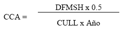 | C.C.A. DFMSH 0.5 CULL | = Capacidad de Carga Animal = Disponibilidad de forraje en materia seca hectárea por año = Nivel de utilización de pastos = Consumo Unidad Llama |