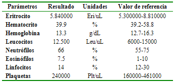 Tabla 1 Parámetros hematológicos