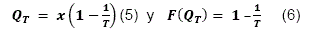 Los mismos autores indican que el periodo de retorno (T) es el valor esperado del intervalo entre ocurrencias promedio de eventos que exceden o igualan una magnitud especificada de la variable aleatoria . Entonces, un cuantil con periodo de retorno (QT), es un evento de magnitud extrema, que tiene una probabilidad 1T-1 de ser excedido por cualquier evento específico. Para un evento extremo alto, ubicado en la cola superior de la distribución de frecuencias, QTestá dado por: