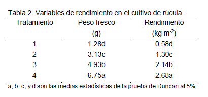 El mejor tratamiento para la variable peso fresco y rendimiento fue el tratamiento 4 y el tratamiento 1 (testigo) fue el que presento los peores resultados.