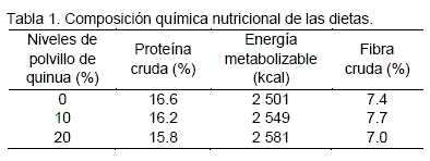 Evaluación de tres niveles de polvillo de quinua (Chenopodium quinoa Wild)