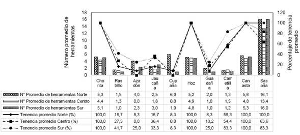 Figura 1 Tipo de herramienta y tenencia promedio por familia.