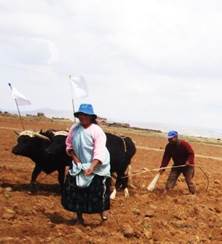 Actualmente en algunas regiones de Bolivia, el uso de la tracción animal ha disminuido debido a la incorporación del tractor principalmente en labores de la branza primaria y secundaria, tal es el caso de varios municipios del Altiplano Norte y Centro del departamento de La Paz. No se dispone de mucha información sobre trabajos que reporten el tiempo de uso de la tracción animal en estas regiones, pero lo que sí se conoce es que la tracción animal (Figura 3) ha sido reemplazada por el tractor en las dos labores de preparación de suelos y la poca disponibilidad de yuntas en la zona.