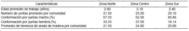 Con relación a la existencia de animales orientados a desarrollar labores de labranza, se ha podido establecer que existe una pequeña diferencia entre las tres zonas. En la zona sur se tiene un promedio de 27 yuntas por comunidad aspecto que puede deberse a que esta zona dispone de mayor oferta de forrajes y además es una zona con una mayor diversidad de cultivos, en los cuales existe una mayor demanda de labores agrícolas sobre todo en los cultivos anuales; aunque las superficies en promedio sean menores a las otras dos zonas.