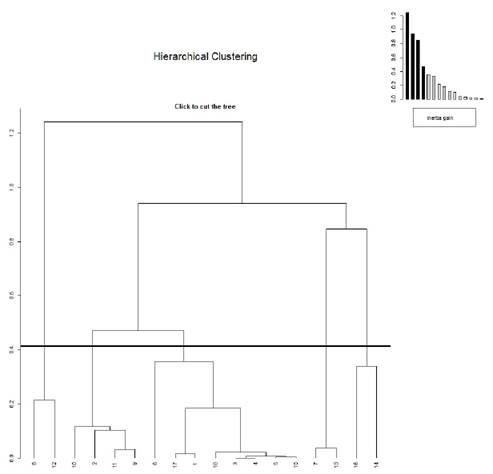 La determinación de los grupos se realizó mediante el Análisis Factorial Múltiple de Mezcla de Datos a partir de variables productivas y socioeconómicas y de acuerdo con su comportamiento estadístico, se priorizaron las variables de área sembrada en papa, tamaño total del predio, tipo de preparación del suelo, tipo de material sembrado y acceso a crédito bancario. En la Figura 1 se muestra el dendrograma de la tipificación con el agrupamiento de los diferentes tipos de productores.