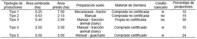 Productor tipo 5: pequeños productores tradicionales, con uso de-guachado y semilla certificada