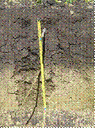 Se utilizó una superficie territorial de una tarea (629 m2), la cual presenta suelos con drenajes pobre a imperfectos, de textura arcilloso - limosa en superficie y arcillosa intensamente moteada a poca profundidad. Estos suelos son planos, con pendiente inferior al 1 %, se anegan fácilmente en épocas lluviosas, poco permeables, que en épocas de sequías se agrietan profundamente. Presenta una capacidad de intercambio de cationes efectiva dentro de los niveles deseables de 19.12 meq 100 g-1 de suelo, por lo que se considera que tiene una fertilidad natural buena. Contenido de potasio bajo (0.09 meq 100 g-1), calcio adecuado (46.47 meq 100 g-1), magnesio muy alto (52.28 meq 100 g-1) y materia orgánica adecuada (4.36 %). El zinc, el hierro y el manganeso se presentan bajos (0.80, 19.99 y 1.19 ppm respectivamente), junto al fósforo: 4.59 ppm (Almonte et al., 2011). El suelo es Vertisol (Figura 1).