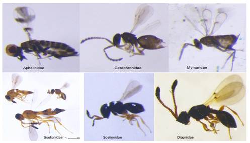 Grupos registrados abundantes y diversos son los depredadores y parasitoides (Tabla 1), que realiza el control biológico natural, son muy activos en buscar a su huésped, en ese afán, estos individuos están asociados directamente a la polinización de las flores del cacao, si bien son organismos entomofagos, necesitan de sobre manera: agua, mielecillas, néctar y polen para fortalecer su vigor de insecto parasitoide o depredador. Así mismo, son los responsables directos de regular las poblaciones de los insectos fitófagos como la chinche de la mazorca del cacao Monalonium dissimulatum y pulgones Aphididae, entre otros, de manera que, mantienen en equilibrio la entomofauna en los ecosistemas naturales y en los cultivos de cacao del municipio de San Ignacio de Moxos.