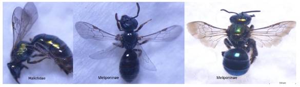 Las abejas nativas o abejas sin aguijones, son las más importantes registradas en la observación directa en flores de cacao. Al respecto Adler et al. (2022), menciona a las abejas sin aguijón son muy diversos y clasificadas a nivel mundial con 500 especies, de ellas, para la zona del Neotrópico son 400 especies y para Bolivia están registradas 102 especies.
