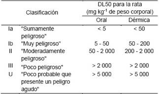 Tabla 2 Clasificación recomendada de los plaguicidas por el peligro que presentan.