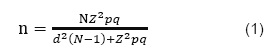Se calculó empleando la Ecuación 1 de “población conocida y varianza desconocida” (Hernández et al., 2014):