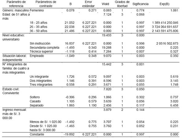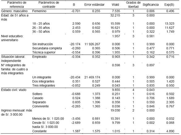 Tabla 3 Variables en la ecuación de Regresión Logística Binaria en el Distrito Ciudad Nueva.