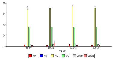 La prueba de Duncan establece diferencias significativas para la suma bruta de los tratamientos con bacterias en comparación con el tratamiento testigo (Tabla 3). En cuanto a la severidad causada por la enfermedad en los tratamientos, el análisis de Duncan muestra que los tratamientos con bacteria tienen diferencias significativas con respecto al testigo. No se evidencia diferencias entre los tratamientos con bacterias (Tabla 3).