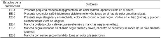 Tabla 2 Estado evolutivo (EE) de la enfermedad de Sigatoka negra.