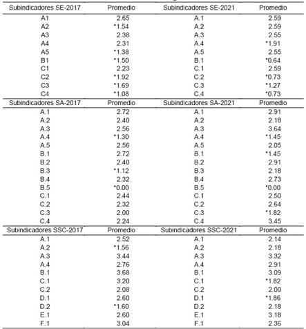 Los valores en la Tabla 4. corresponden al promedio de los participantes en el estudio por cada etapa, para cada subindicador.