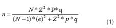Dónde: N = población total número de unidades productivas que se dedican a cultivo del ñame 5928 que se constituye en el universo; Z = nivel de confianza elegido en este caso el 95 por ciento con un valor de 1.96; P = proporción de los productores clasificados como pequeños productores con unidades de menos de una hectárea que corresponden al 70% del universo de unidades productivas; q = diferencia entre el total de la población y la proporción de productores con unidades iguales o mayores a una hectárea cultivada (1-P); e =error máximo de muestreo permitido el 5% dado a lo pequeña que resultada la muestra en algunos casos.