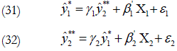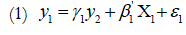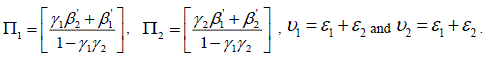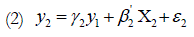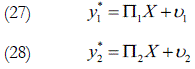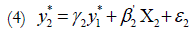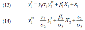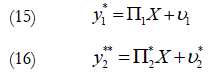 Since Υ*2 is observed only as a dichotomous variable, the equations in its reduced form are as follows: