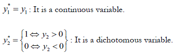Equations (3) and (4) constitute the structural form of the model of simultaneous equations with qualitative dependent variable. Where Υ*1 is a function of Υ*2 and Υ*2 is a function of Υ*1