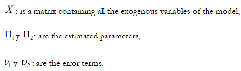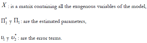 Equations (27) and (28) represent the reduced form of the model of simultaneous equations with dependent qualitative variable8 to model the formality (informalization).