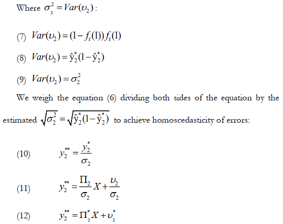 Equations (5) and (6) represent the reduced form of the model of simultaneous equations with dependent qualitative variable2.