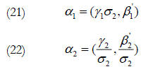 The correction need to be implemented on the covariance matrices α1 and α2, equations (19) and (20) respectively. Equation (21) represents the covariance matrix of equation (19) with mean and variance equal to y1σ2 and β'1 respectively. Equation (22) represents the covariance matrix of equation (20) with mean equal to