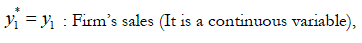 y*1 It is a continuous endogenous variable that represents the logarithm of sales of the firm in the second survey (in constant dollars).