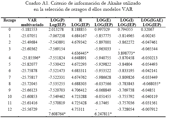 11 La selección de rezagos en cada modelo bi-VAR se realiza con base en el criterio de información de Akaike