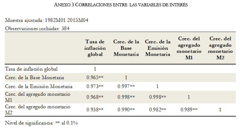 En el documento se abordó la relación dinámica entre las fluctuaciones cíclicas de la inflación y el dinero para finales del siglo XX y principios del siglo XXI, mediante correlaciones móviles y la modelización de Vectores Autoregresivos.