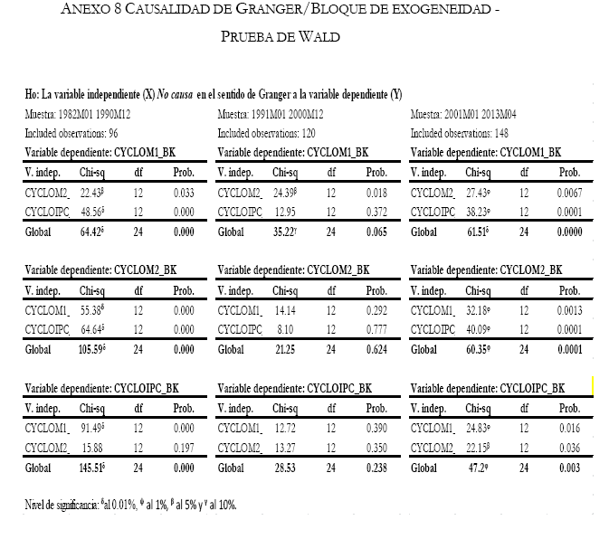 Finalmente, se utilizó Vectores Autoregresivos (VAR) con las fluctuaciones de componentes cíclicos en el nivel de precios y la cantidad de dinero para los periodos de 80's; 90's y los albores del siglo XXI.