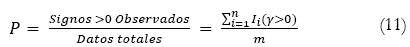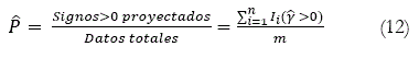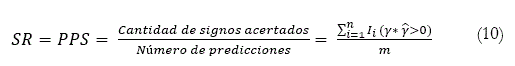 Esta evaluación se realiza comparando el signo de la proyección con el signo de la variación observada en cada i-esimo período, en el que i = 1,2,...,m. La efectividad del modelo analizado aumenta cuando los signos entre la proyección y el observado coinciden y en caso contrario, disminuye su capacidad predictiva.