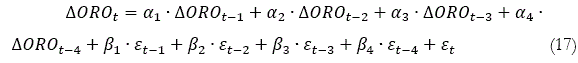 Yt = μ + β0 ut + β1 ut-1 + β2 ut-2 (5)